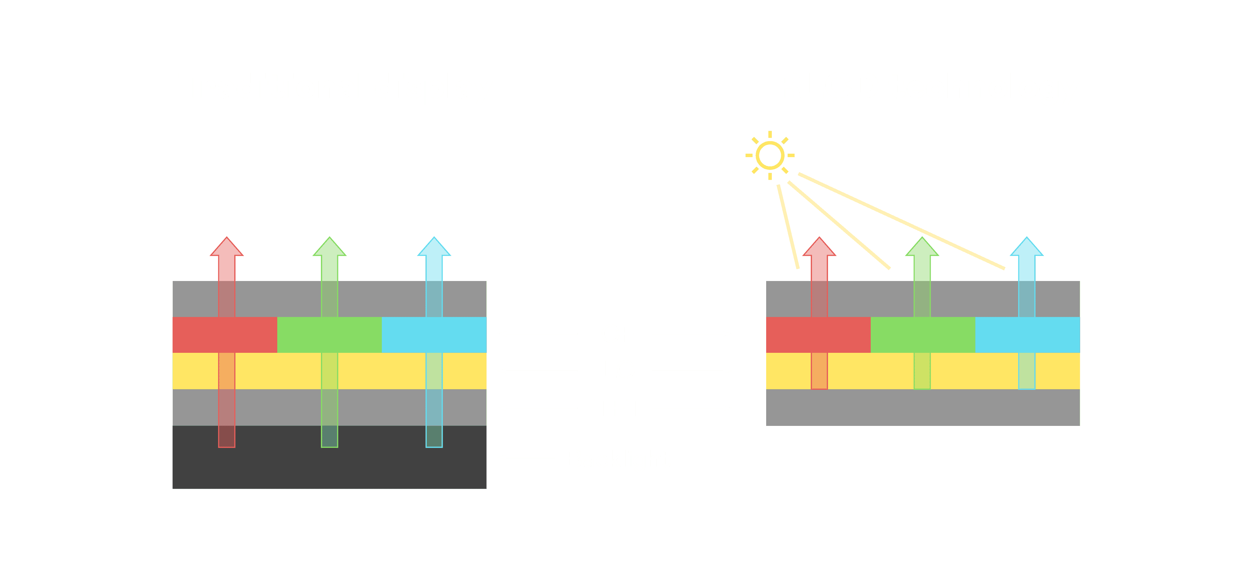 与传统需搭配背光单元的液晶显示相比,,,,反射式液晶技术不仅更省电、、、、更轻薄,,,且即便在艳阳下仍能清晰显示。。此外,,,,少了背光单元,,,也大幅降低了 LED 蓝光伤害眼睛的疑虑。。。。