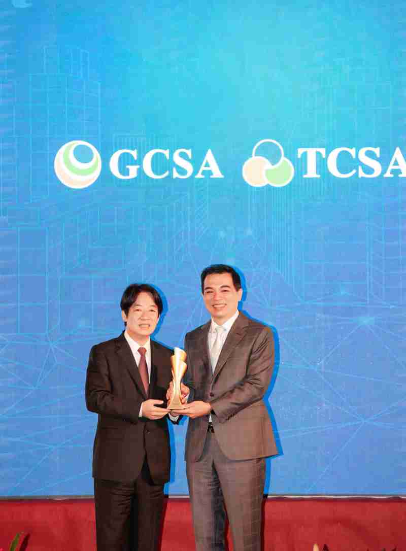 达全方位永续表现获全球永续奖及台湾永续奖肯定,,,由副总统赖清德颁奖 (左),,,杏悦2总经理柯富仁 (右) 代表领奖