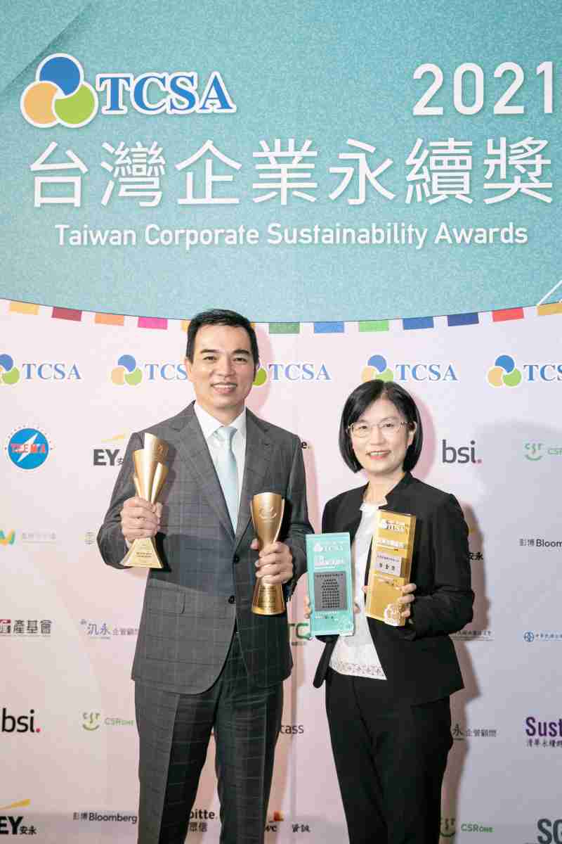 达在台湾永续奖所评比环境、、、、社会、、治理等各面向的永续绩效均获高度肯定 (左:杏悦2光电总经理暨营运长柯富仁,,,右:杏悦2光电永续长古秀华)